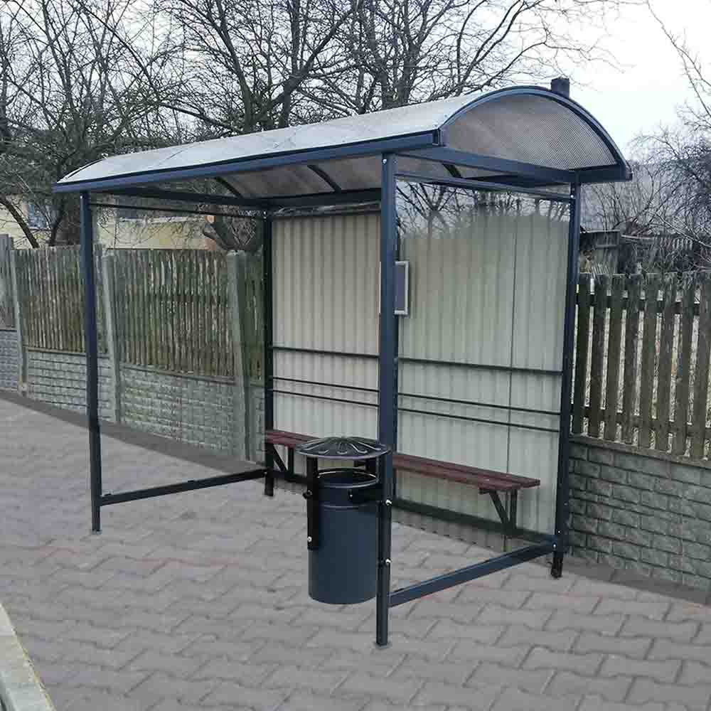 Dach w kształcie delikatnego łuku, wykonany z poliwęglanu komorowego najczęściej przyciemnianego ale może być również bezbarwny lub mleczny, grubość arkusza to 6mm, wyposażony w rynnę oraz jedną lub dwie rury spustowa w zależności od wielkości dachu.